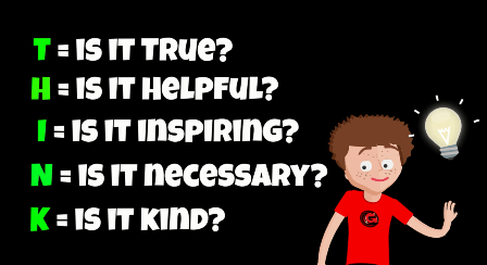 So today, just think before you say or do anything, and if your answer to any of the following questions is ‘No’, reconsider what you were about to say or do.