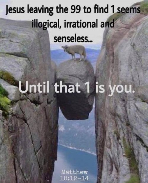 What do you think? If a man owns a hundred sheep, and one of them wanders away, will he not leave the ninety-nine on the hills and go to look for the one that wandered off? And if he finds it, truly I tell you, he is happier about that one sheep than about the ninety-nine that did not wander off. In the same way your Father in heaven is not willing that any of these little ones should perish.