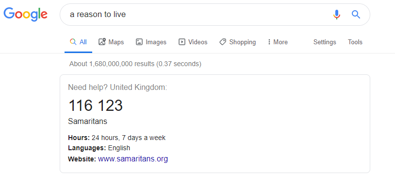 It got wondering how many people have Googled exactly the same thing as me, but who have Googled that phrase because they are in dire need as they are considering suicide.