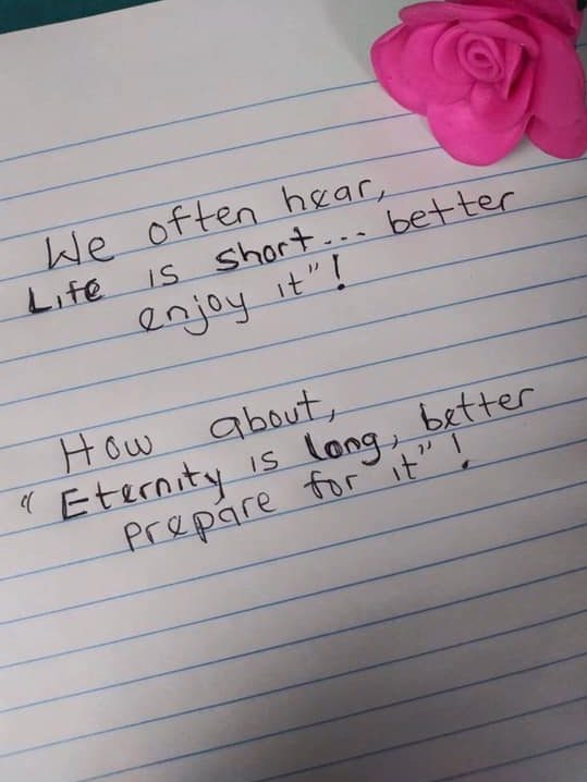 Are you preparing for your eternal life with God, or are you too busy living your life here on earth? Enjoy life, but don’t leave it too late to sort our your eternity
