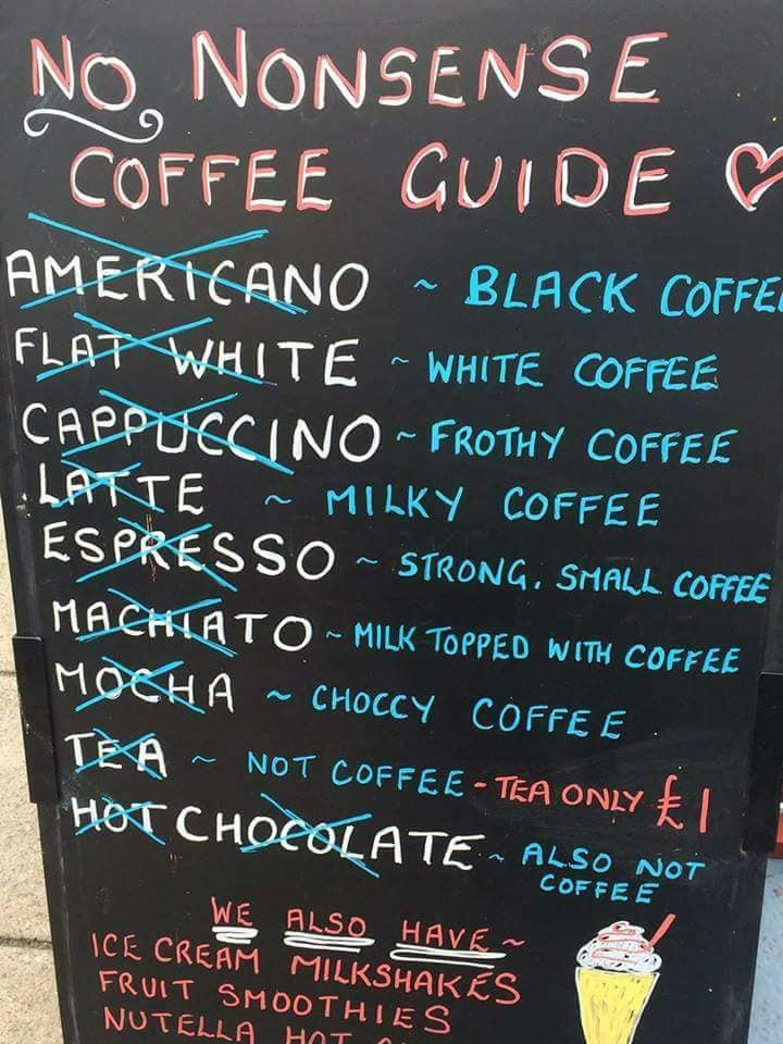 So when I came across the following picture, I realised I had to share it with you as it might just help clarify for you the difference between all the different coffees.
