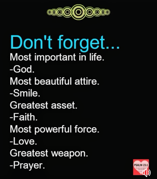 For me, I always try and remind myself of the first and last of the ‘most’ things listed above: that God is most important in my life and that my greatest weapon to defeat those who would try and hurt me or bring me down, is prayer.