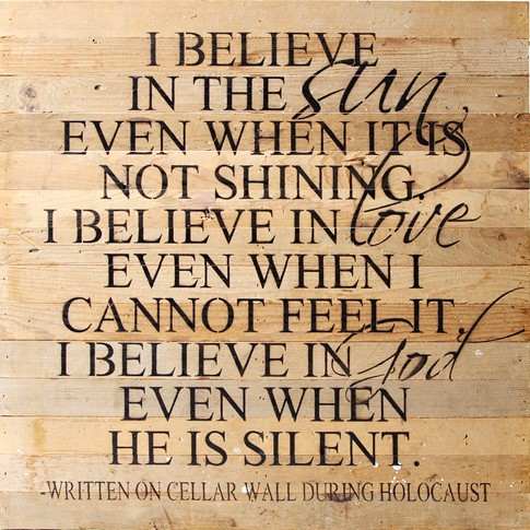 “I believe in God even when he is silent” – That for me has always been very hard, but I try to remind myself that maybe it’s me who isn’t ‘being still’ and listening for God to speak to me, and guide me. But if someone in a prison cell during the holocaust can keep on believing in those circumstances, surely I can when I’m having a tough day.