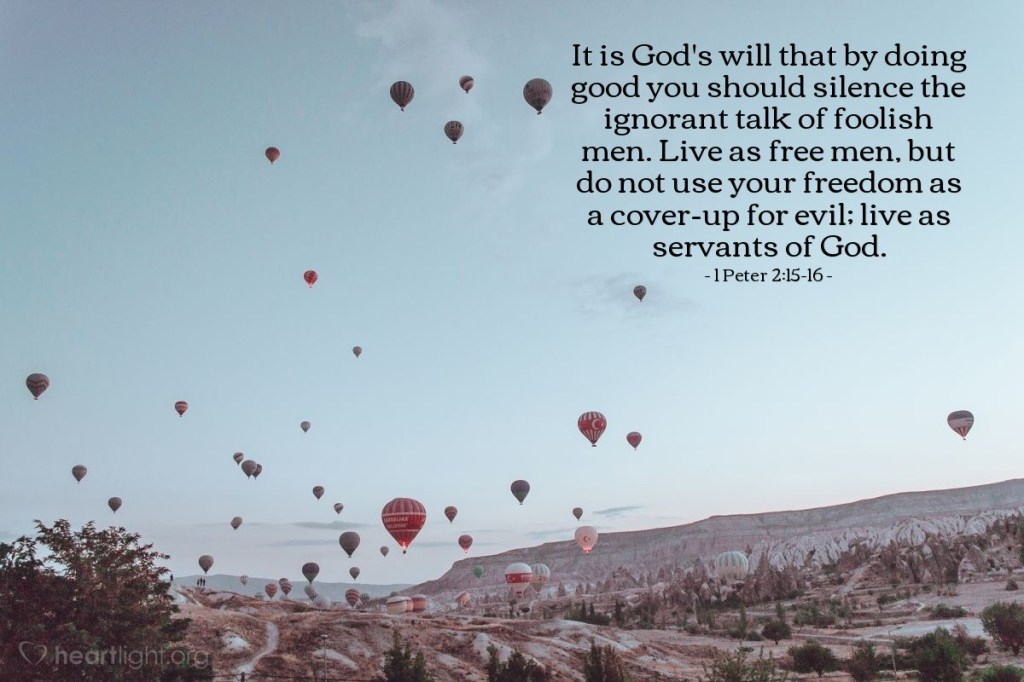 For it is God’s will that by doing good you should silence the ignorant talk of foolish people. Live as free people, but do not use your freedom as a cover-up for evil; live as God’s slaves.