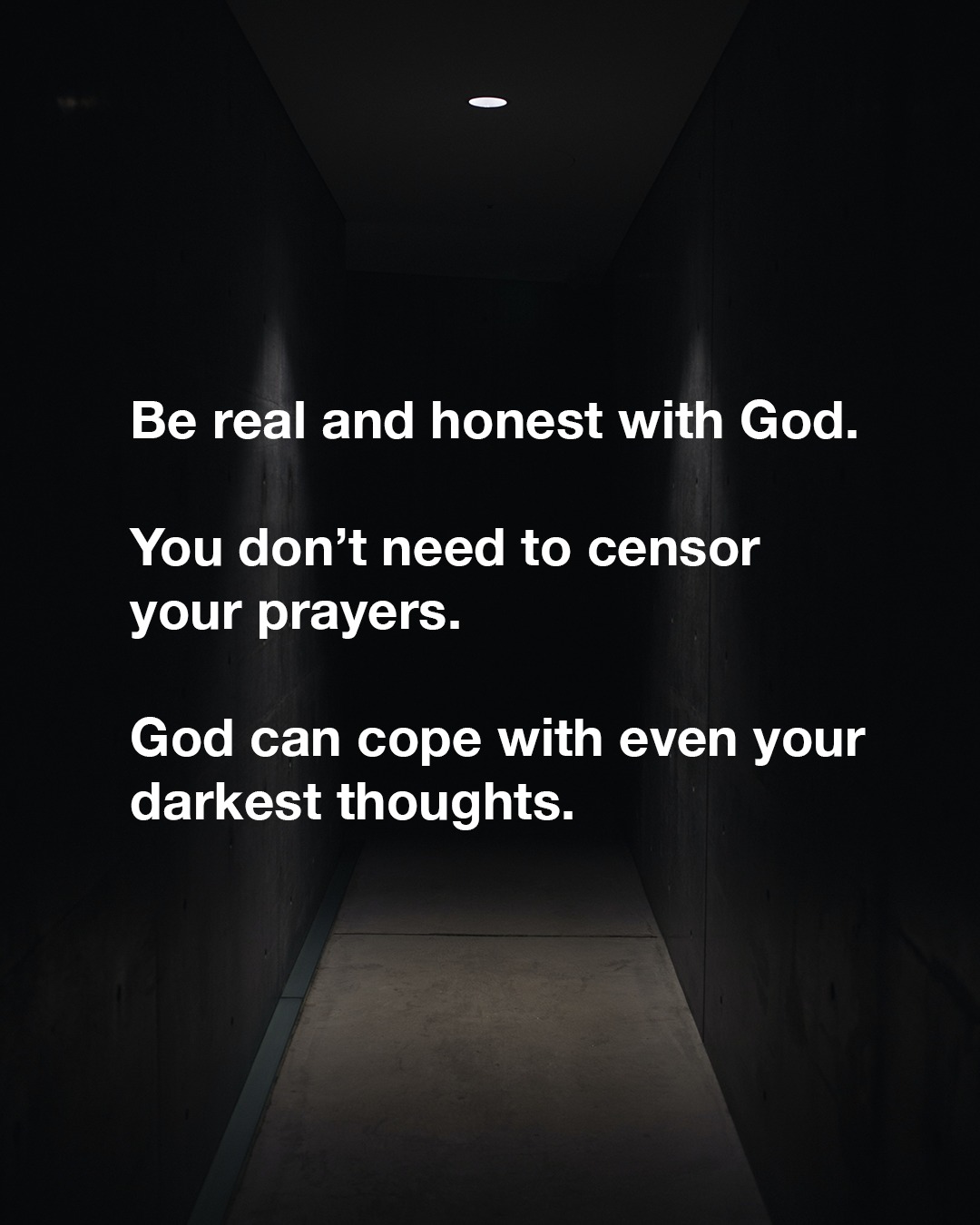 God knows and understands us better than we really understands ourselves, so let Him know all your thoughts and all your fears, even those dark ones.