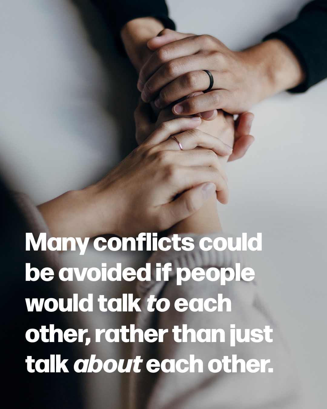 Why is it that when there are conflicts or disagreements between people, we are always more likely to talk about the other person, and their opinions and actions, rather than actually try and resolve the issues by speaking to the other person.