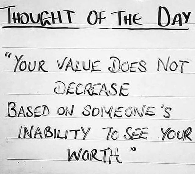 I guess it’s not just about other people decreasing your value because of how they see you – It’s also important to remind yourself not to feel worthless or of no value, just because other tell you you are. After all we each have our own skills and talents which make us important pieces in God’s overall plan.