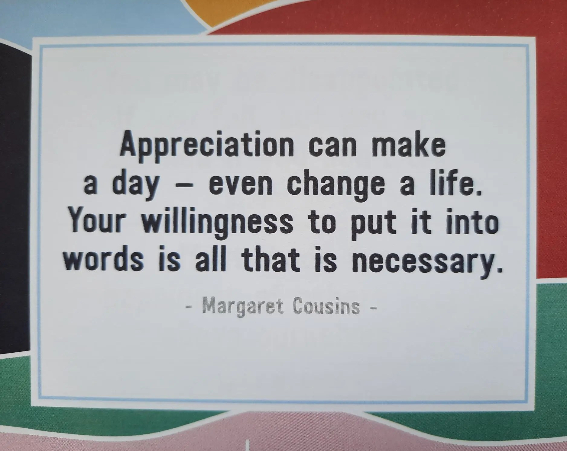 It’s always nice to be appreciated isn’t it? Sometimes we can wonder if there’s any point to doing what we do, to support, encourage and be a friend to others. Sometimes it can feel as if we’re taken for granted and not appreciated.