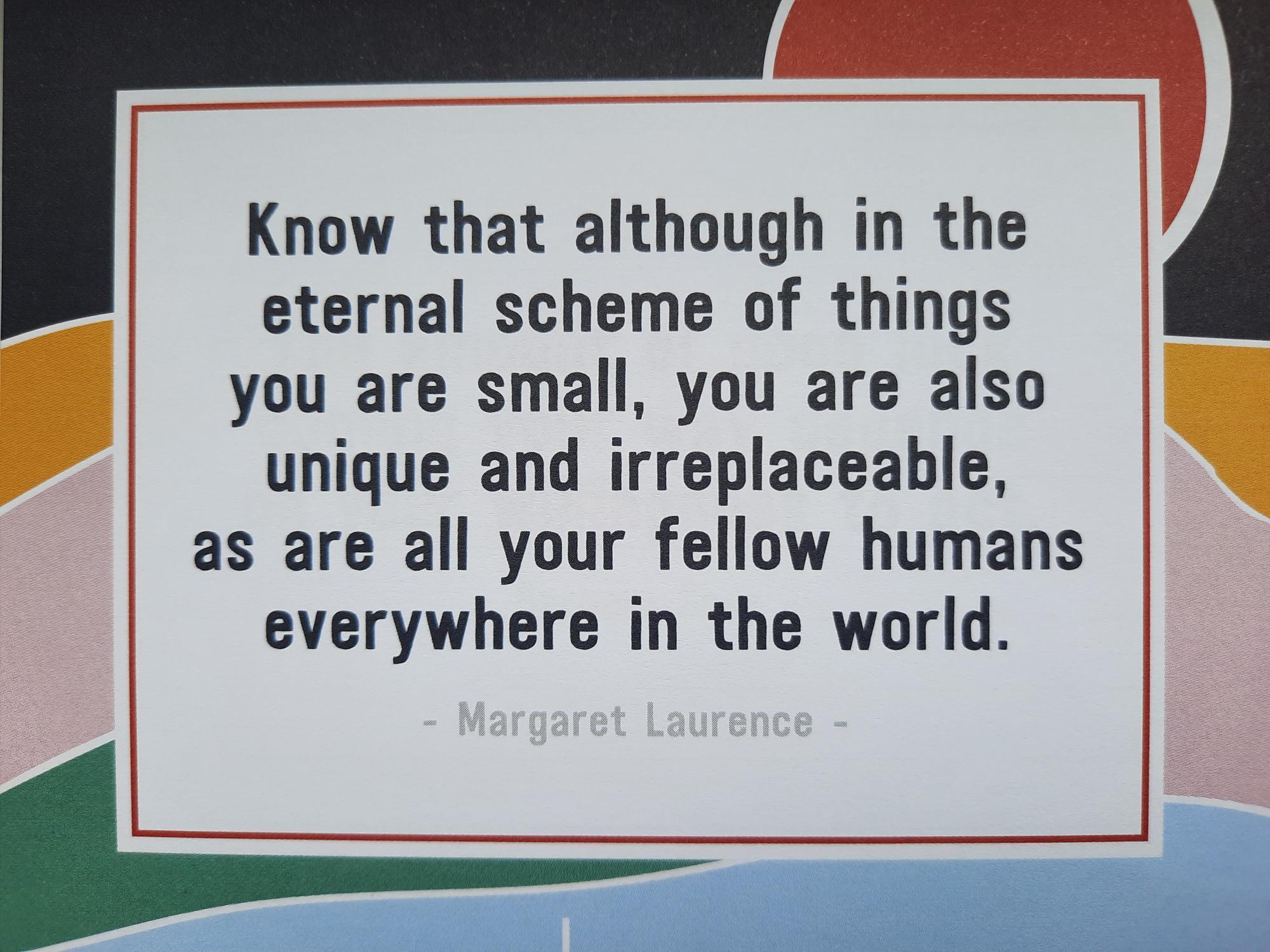 I love the following quote from Margaret Laurence. It fits so well with my thoughts when I came up with the name for my blog, ‘The Distinct Dot – The thoughts, experiences and views of the unique person God knows as me’.