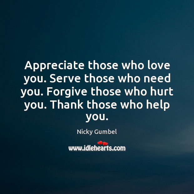 But in reading it in full again, I realise that on focusing just on that first statement I’ve completely overlooked those other just as important statements that followed! Maybe as I try to appreciate my family and friends, I will recognise that I need to serve those in need, while also forgiving those who hurt or upset me – That can be difficult can’t it, but in asking God’s to help me, I will continue to try to do all those things stated in the above quote.