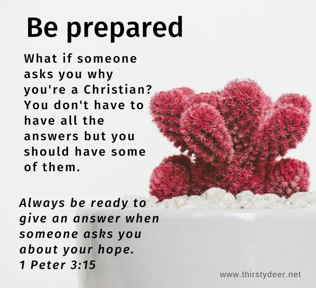 Be prepared October 5, 2023 Dot Christianity and Faith Leave a comment If you cannot answer that question today, take time to consider how you would explain to someone that Jesus gives hope for a brighter future. Rate this:Share this: Click to share on X (Opens in new window) X Click to share on Facebook (Opens in new window) Facebook Click to share on Pinterest (Opens in new window) Pinterest Click to share on Tumblr (Opens in new window) Tumblr Click to share on WhatsApp (Opens in new window) WhatsApp Click to share on LinkedIn (Opens in new window) LinkedIn Click to email a link to a friend (Opens in new window) Email Click to share on Reddit (Opens in new window) Reddit Click to print (Opens in new window) Print Click to share on Pocket (Opens in new window) Pocket Like Loading... Related