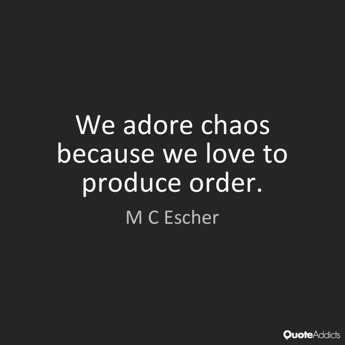 Interesting. For me as a perfectionist who likes to be organised I like order. However I realise that if there were no chaos, what would I have to organise or order?!