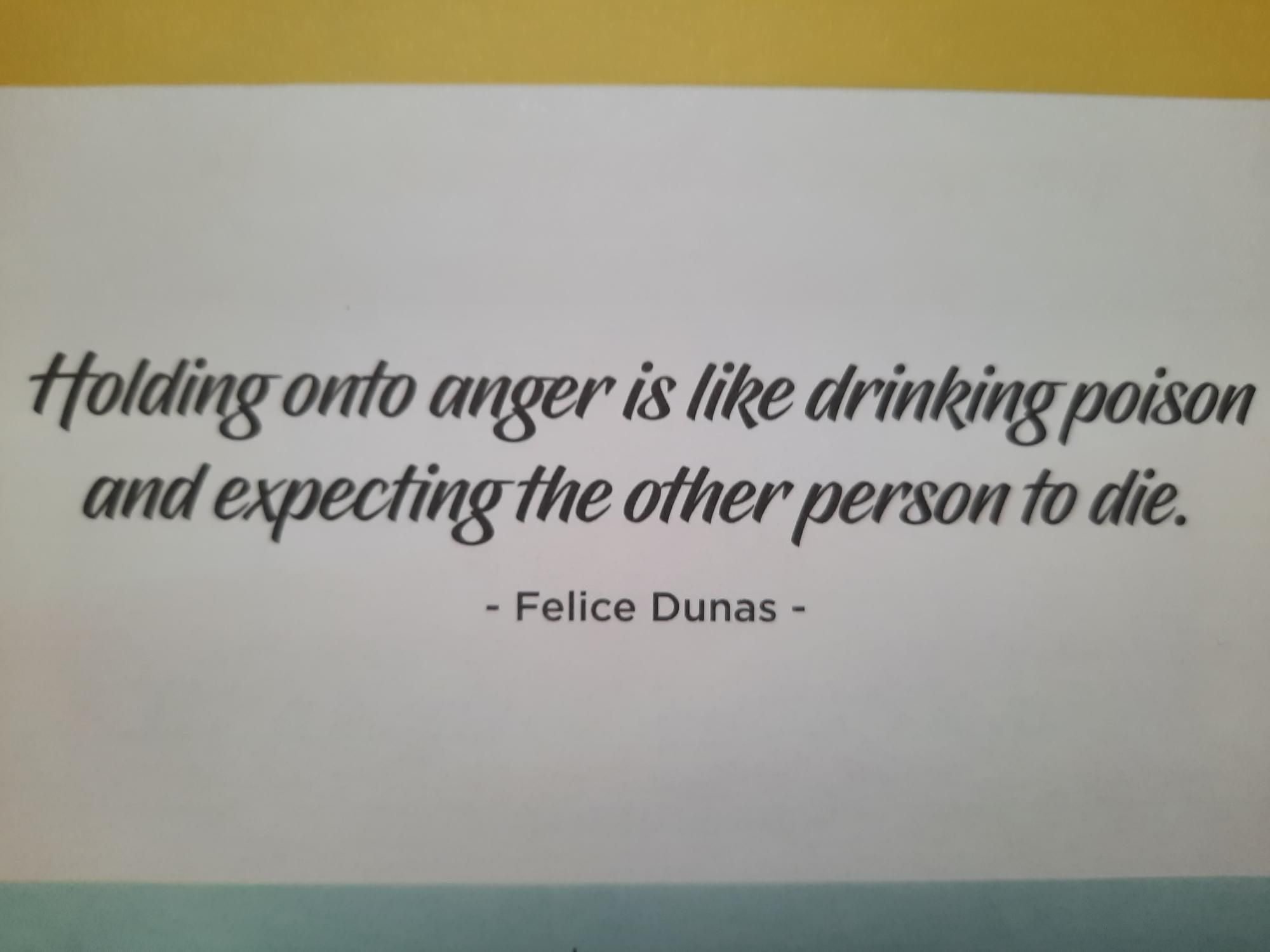I’m sure we’ve all heard folk say, ‘You shouldn’t go to bed angry’. Well here’s another quote I like which is also about holding onto anger.