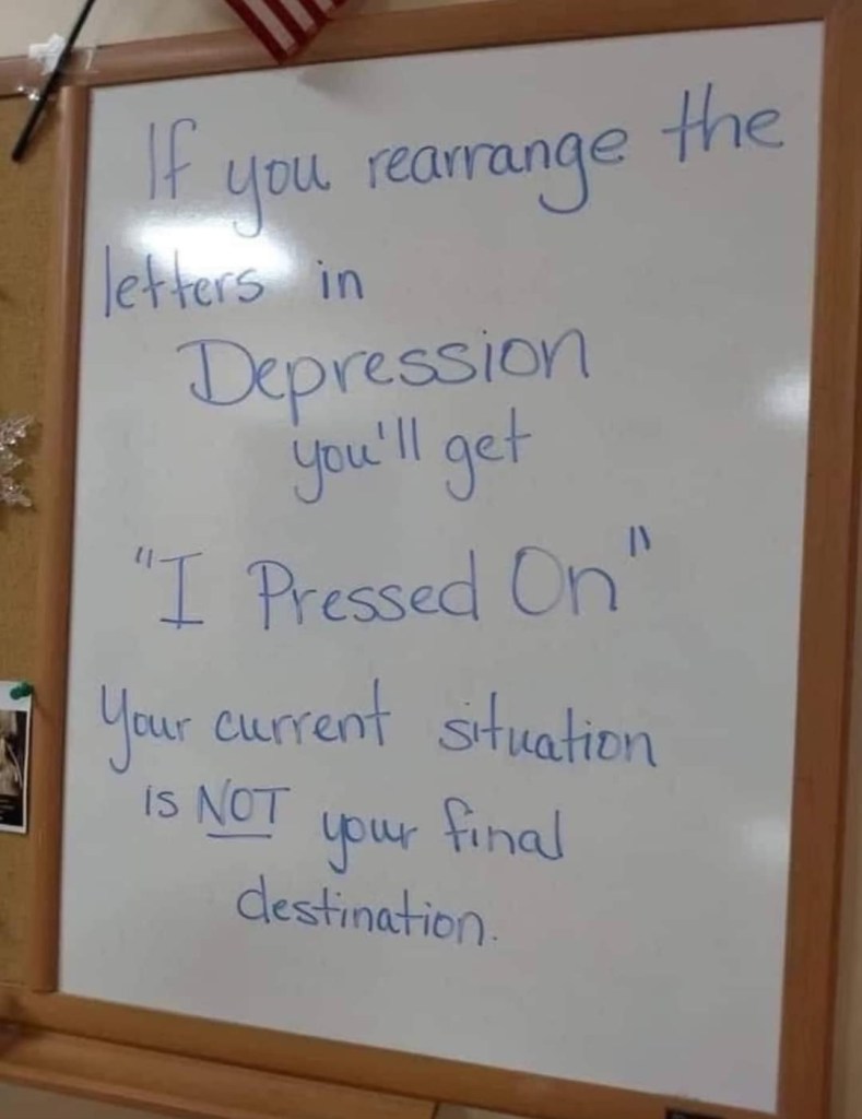 You may be suffering from depression today, but that doesn’t mean it need to last. Just keep working through it and you will get through your current situation.