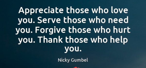 I don’t know about you, but I can be very guilty of taking people/family/friends for granted. Maybe that’s why the above quote from Nicky Gumbel